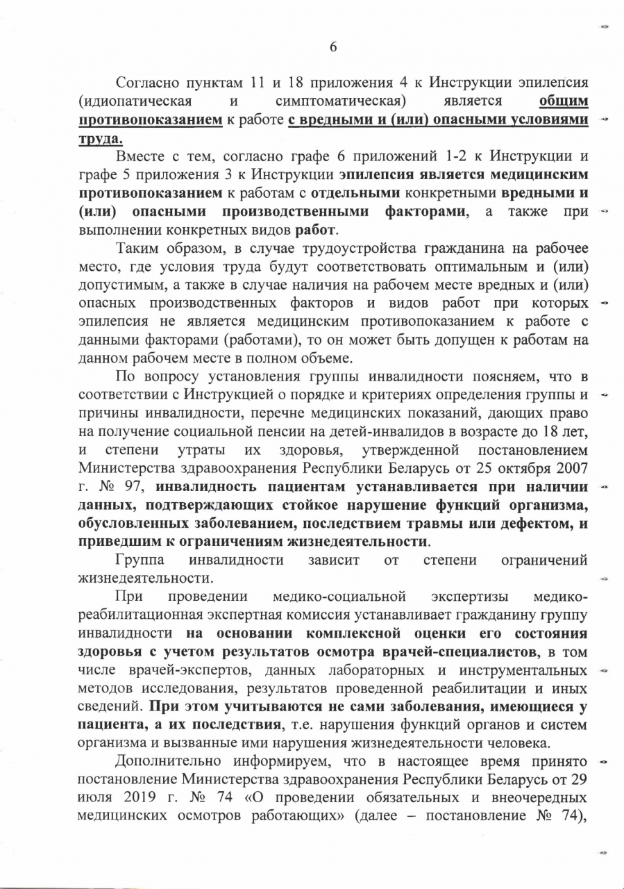 Также хотелось бы, чтобы при решении вопроса о допуске человека на ту или иную работу медицинские работники не только смотрели в Постановление, но ещё и могли бы делать те или иные отступления, корректировки, с учётом особенностей того или иного пациента. Пока такого, к сожалению, нет.
