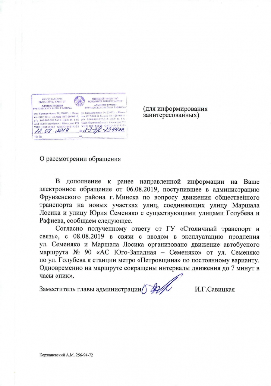 UPD. С 8 августа в связи с вводом в эксплуатцию продления ул.Семеняко и маршала Лосика организовано движение автобусного маршрута №90 "АС Юго-Западная-Семеняко" от ул.Семеняко по ул.Голубева к станции метро "Петровщина" по постоянному варинту. На маршруте сокращены интервалы движения до 7 минут в час пик.