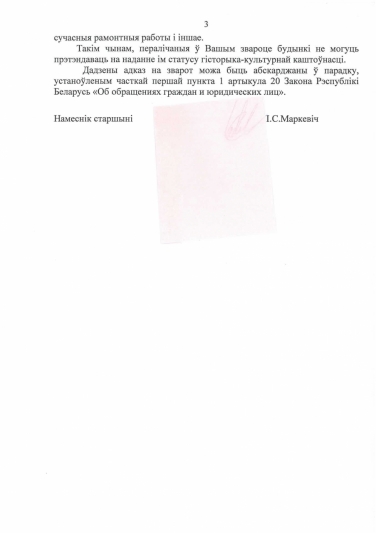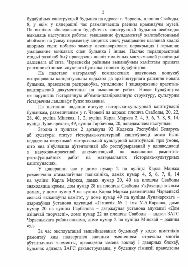 1) Ці праўда, што пры знішчэнні аднаго з найбольш буйных гістарычных будынкаў Чэрвеня, з якім звязана шмат гістарычных падзей, культурны гістарычны ландшафт горада не пацерпіць?