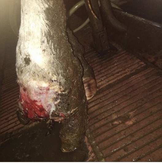 Животные, содержащиеся на данной ферме, находятся в ужасном состоянии, обращение с коровами крайне жестокое. Животные гниют заживо. Мёртвые телята лежат среди живых неделями. У коров гниют вымя и копыта. Снимки, прилагаемые к настоящему обращению, сделаны в старом родильном отделении, где складируют мёртвых телят и так они лежат неделями. Прогнившие вымена на фото — живых дойных коров, молоко от которых отдается на выпойку телятам. На фотографиях отчётливо можно увидеть гниль и серьёзные травмы копыт у коров. Животные без какой-либо подстилки стоят и лежат в навозной жиже.