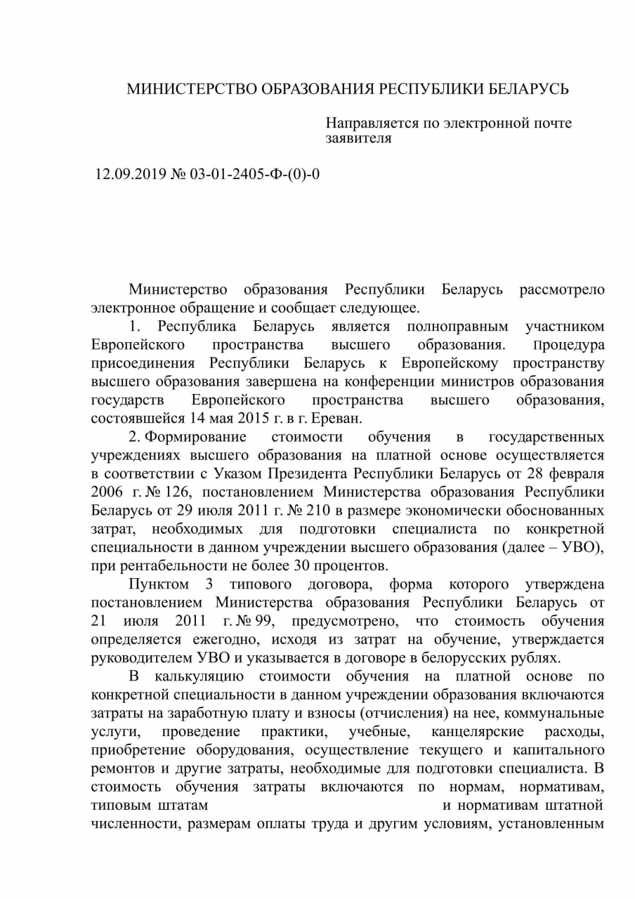 Образование в Беларуси не даёт гарантии трудоустройства и достойной заработной платы, при этом оно не ценится и не признаётся в Европе. Болонский процесс в Беларуси начинался, но чем закончился и что с ним сейчас неизвестно. Обучение, особенно в интегрированной системе (сокращённое обучение после получения ССО, второе высшее) не упорядочено и вызывает массу вопросов.