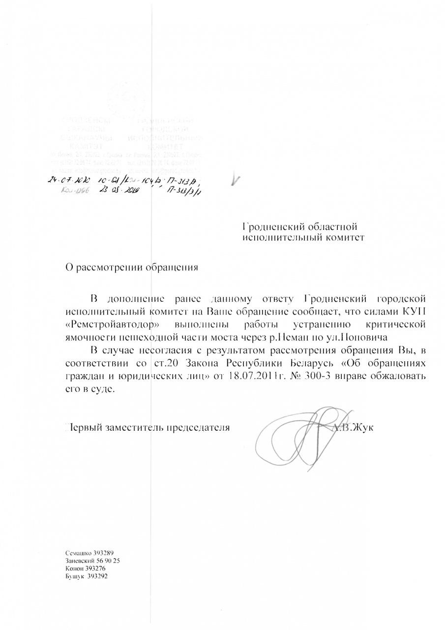 Обращаемся к Вам с просьбой в 2019 году провести также ремонт на пешеходной части Румлевского и Нового мостов и в дальнейшем включать её полное обновление в планируемые текущий и капитальный ремонт мостов Гродно.