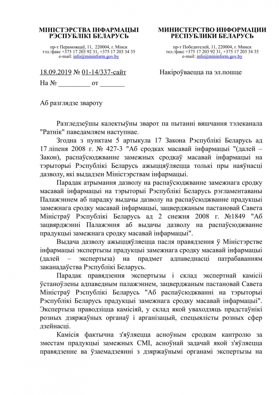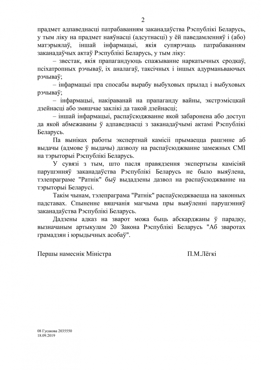 Тэлепраграма "Ратнік" распаўсюджваецца на законных падставах. Спыненне вяшчанія магчыма пры выяўленні парушэнняў заканадаўства Рэспублікі Беларусь.