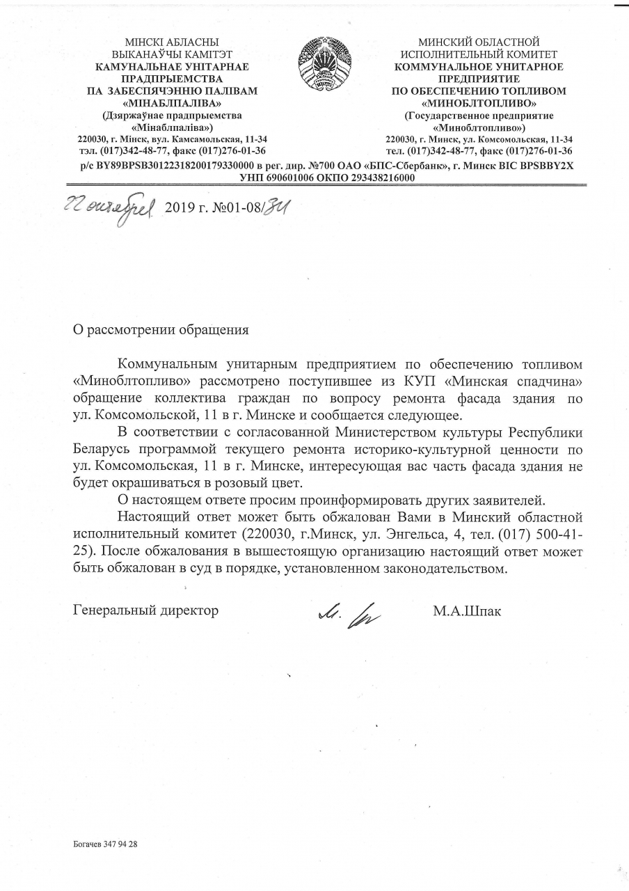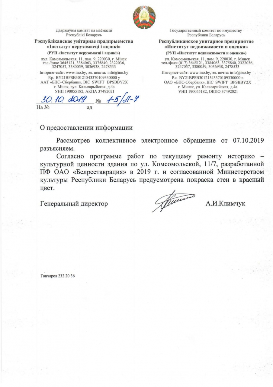 На основании изложенного, требуем не допустить покраску стен знаменитого "красного дворика-колодца" в центре Минска в розовый цвет.