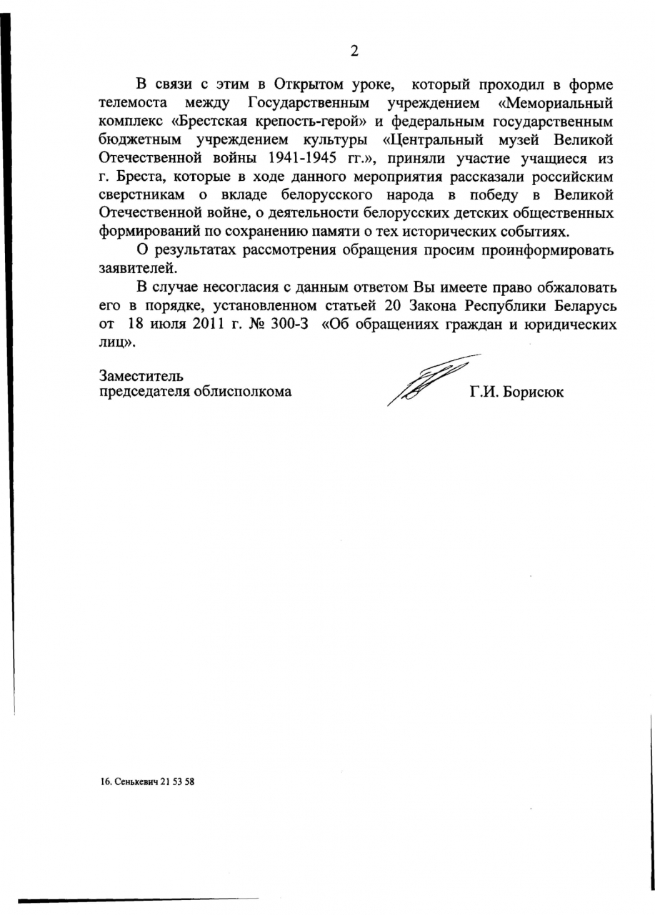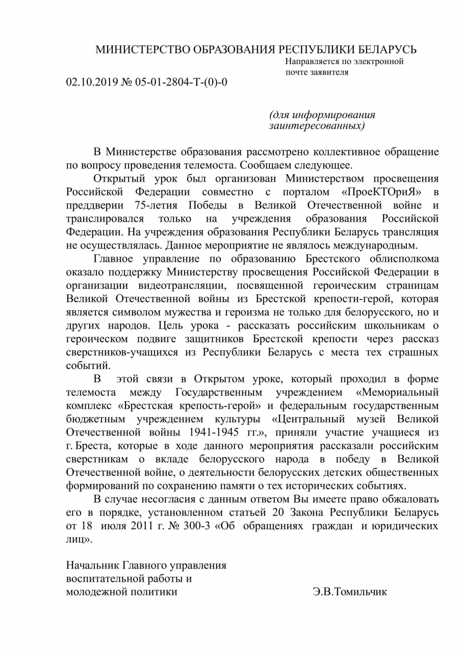 В открытом доступе в сети Интернет, на портале Брестского областного исполнительного комитета размещена информация о том, что 5 сентября проводился телемост в формате всероссийского открытого урока.