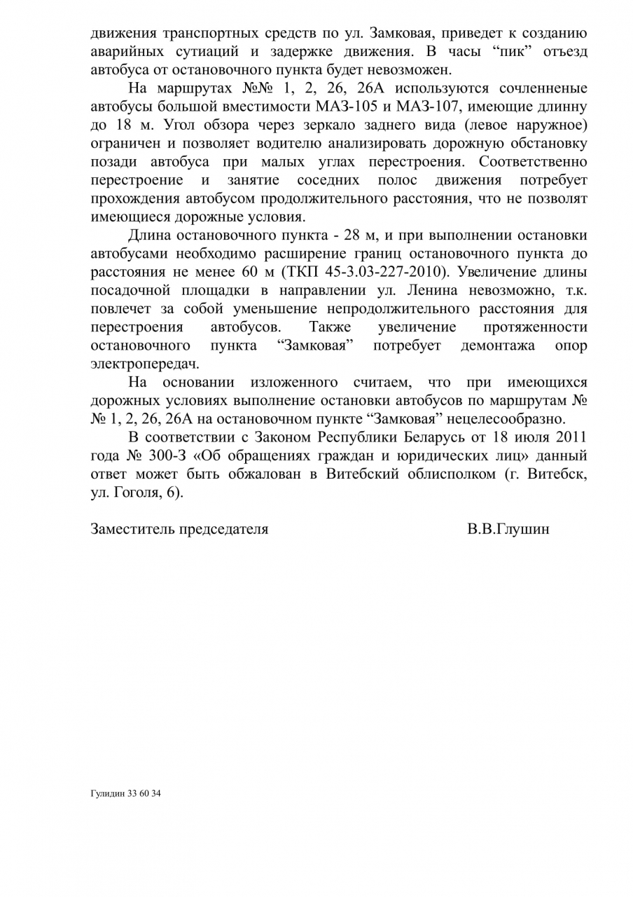 Например, у автобусов №1, №2, №26 ближайшая остановка "Ратуша". То есть приходится выходить на остановочном пункте "Комсомольская" и идти через мост или выходить на остановке "Ратуша" и идти назад, расстояние довольно большое и с той и с другой остановки. Просим рассмотреть предложение, содержащееся в настоящем обращении, по существу.