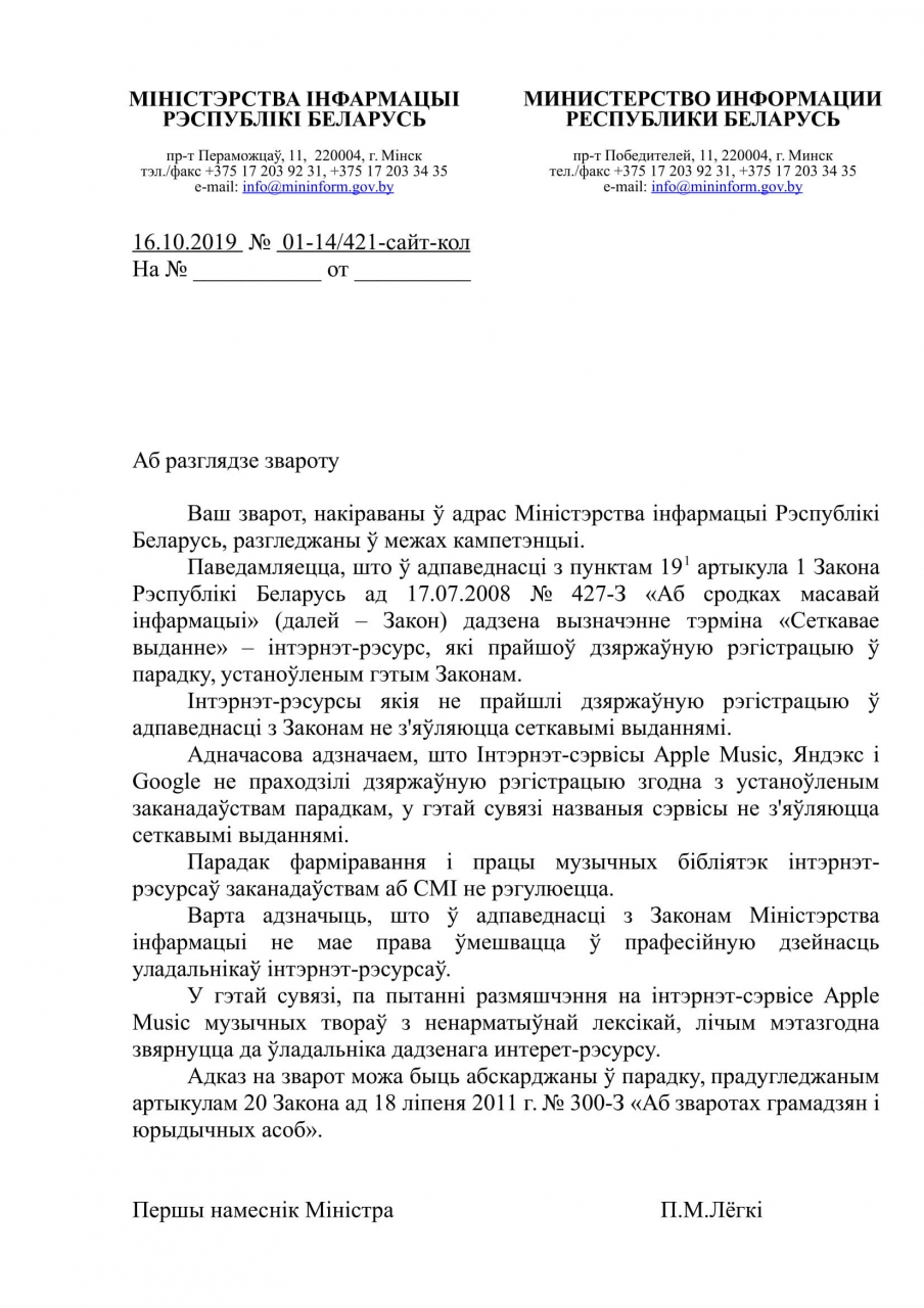 Мы, як грамадзяне Беларусі паважаем законы нашай краіны, але ж гэтые законы не павінны працаваць супраць нас і абмяжоўваць нашыя магчымасці карыстацца сучаснымі сэрвісамі, а дакладней праслухоўваць музыку з абсцэннай лексікай у Apple Music.