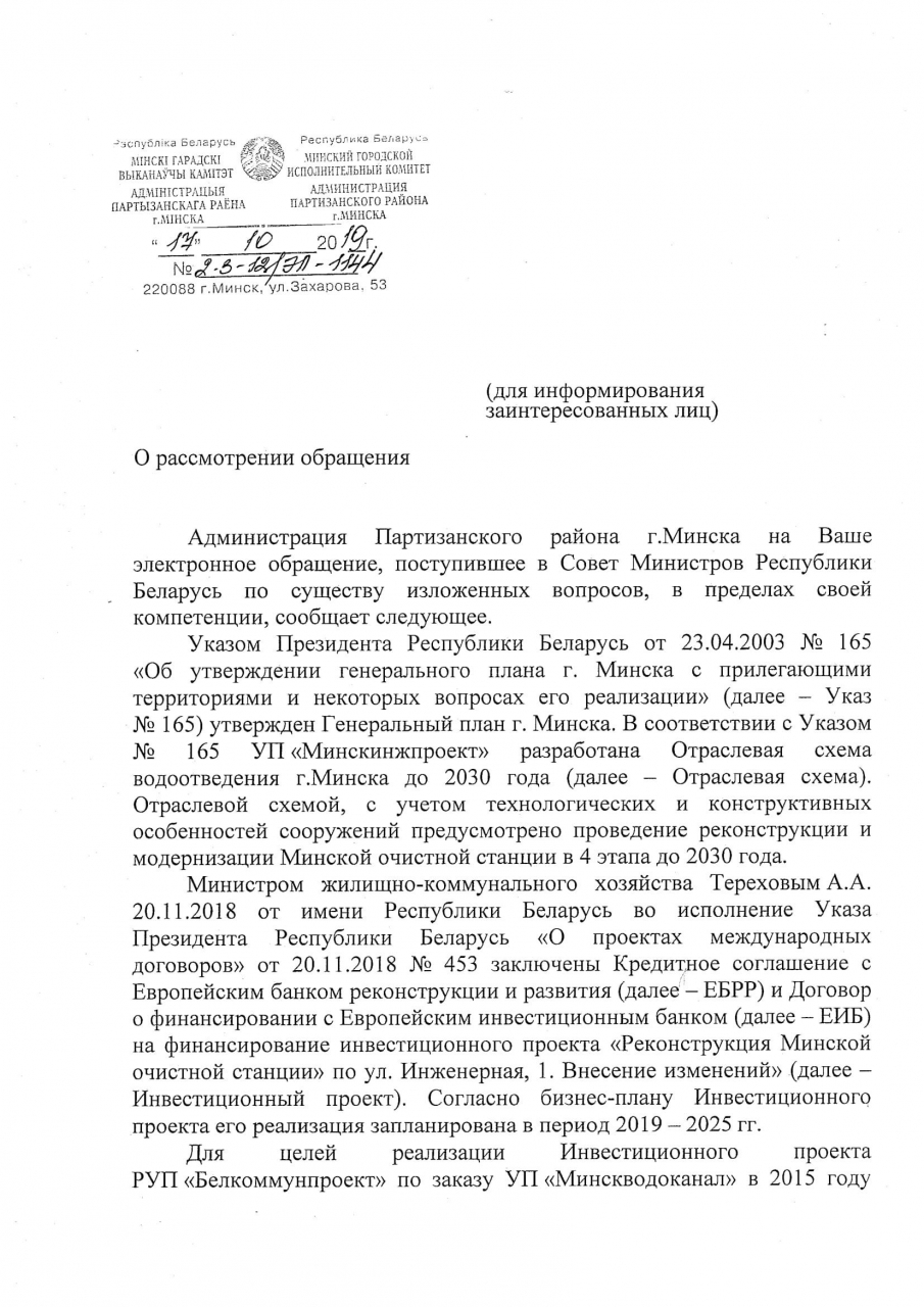 При том, что провести реконструкцию Минской очистной станции, которая, по нашим сведениям, источает неприятный запах, распространяющийся на четверть территории Минска и Минского района, обещали и к 2015 году, и раньше, а ничего не сделано до сих пор.
