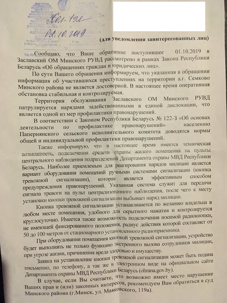 За последние две недели в аг.Семоково Минского района, по нашим данным, ограбили 5 коттеджей, двух человек оглушили, кражи происходят с 23:00-01:00. Не помогают ни камеры, ни собаки. Выносят всё, даже из нежилых строящихся домов срезают проводку. Жители Сёмково в панике из-за сложившейся ситуации. Сегодня ограблен еще один коттедж, в другом разбито окно.