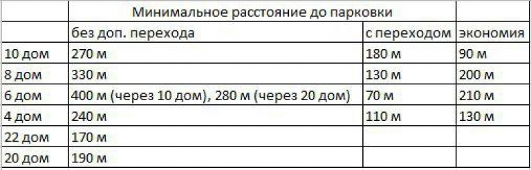 Оценка удобства от дополнительного перехода приведена в таблице на рис. 2. Отметим, что это «лишнее» расстояние нужно проходить каждый день, особенно, людям приезжающим на автомобиле поздно (в это время все места во дворе заняты) и тем, кто ходит на остановку общественного транспорта "Спортивно-стрелковый комплекс" и обратно.