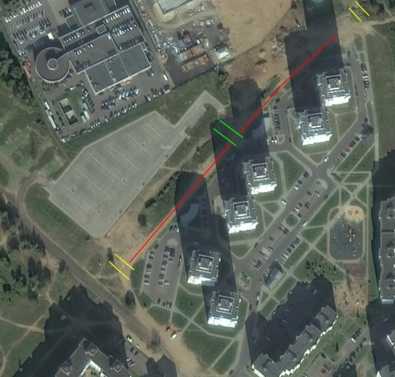 На текущий момент проектом предусмотрены два пешеходных перехода (на рис. 1 отражены желтым цветом):