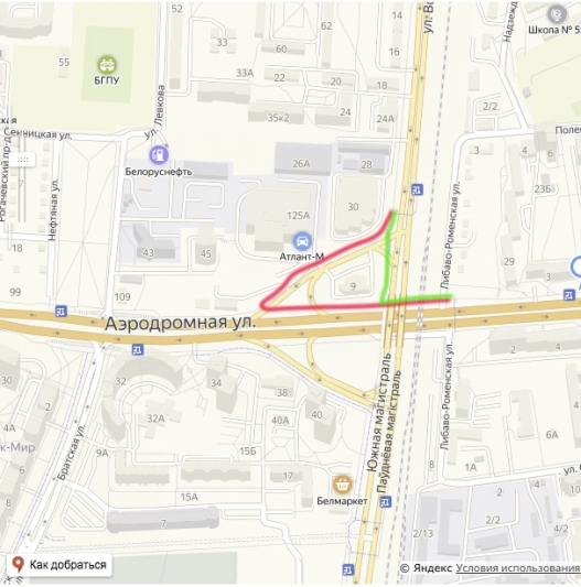 Руководствуясь ст.45 Закона "О местном управлении и самоуправлении в Республике Беларусь", которая устанавливает, что местные администрации в пределах своей компетенции в порядке, установленном законодательством, обеспечивают благоустройство соответствующей территории, просим администрацию Октябрьского района построить ступеньки для спуска ну ул.Аэродромная в данном месте. В летний сезон, по следам на зеленой зоне было заметно, что много людей «срезают» маршрут именно в этом месте.