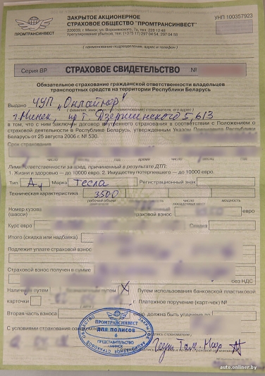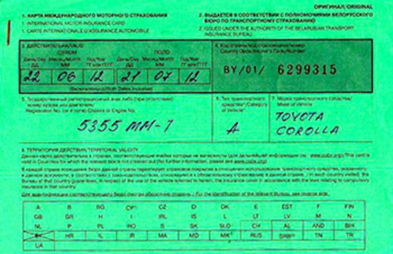 • дакументам устаноўленага ўзору, што сведчыць заключэнне дагавора страхавання «Зялёная карта», з'яўляецца страхавы сертыфікат;