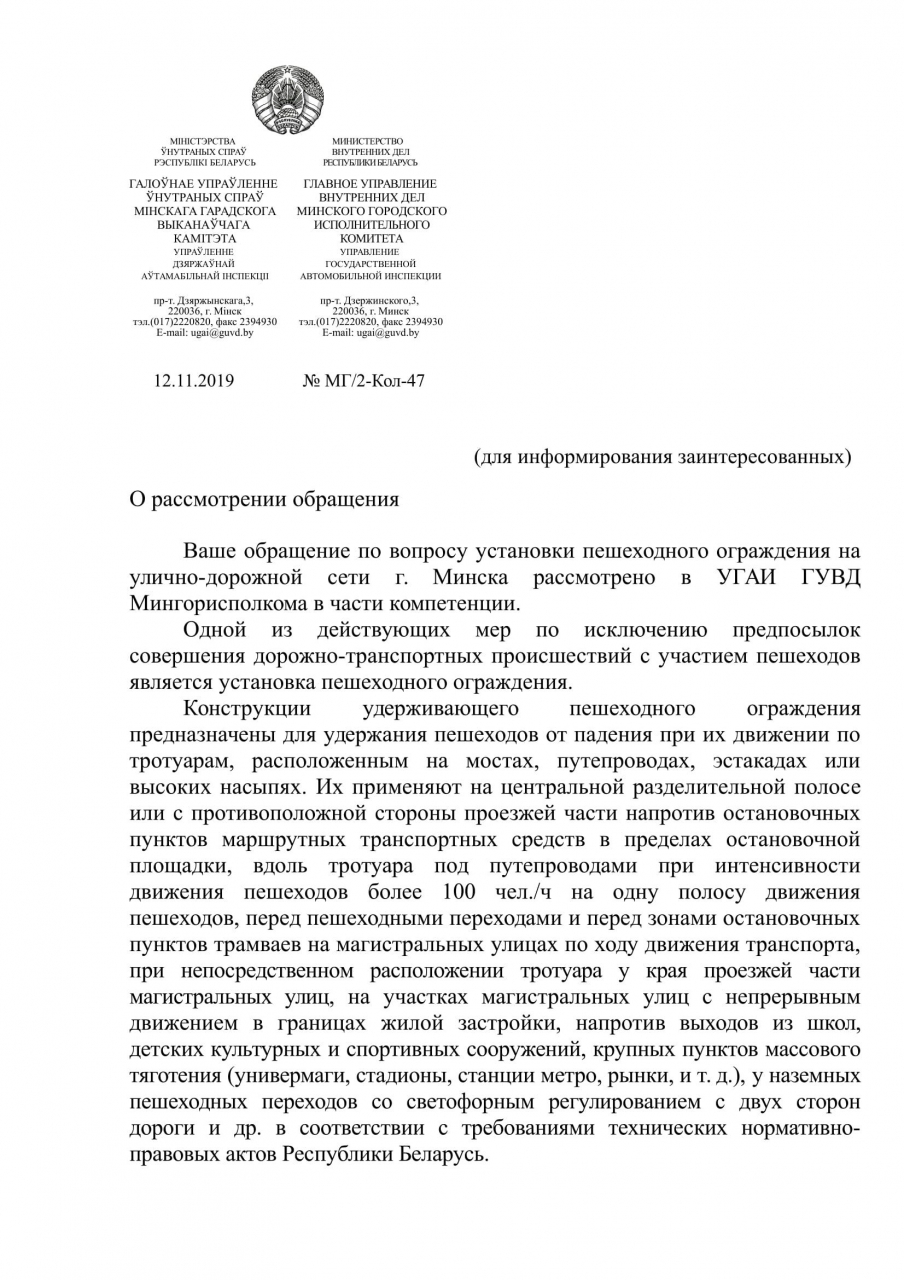 Мы, гости и жители Минска, просим отказаться от практики установки заборов, отгораживающих проезжую часть от тротуаров.