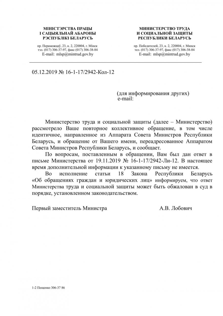 По вопросам, поставленным в обращении, автору петиции был дан ответ в письме Минтруда от 19.11.2019 № 16-1-17/2942-Ли-12. В настоящее время дополнительной информации к указанному письму не имеется.