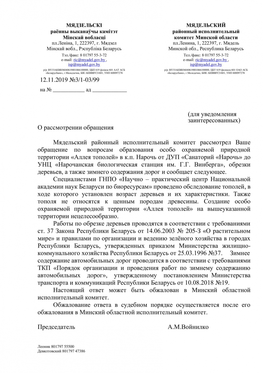 Также просим повлиять на санитарную обрезку сухих ветвей с замазыванием срезов и обрезкой суков по частям для наименьшего вреда нижних ветвей, в присутствии специалиста с биологическим образованием, а также замещение применения ПСС на песчаную смесь по набережной курорта Нарочь.