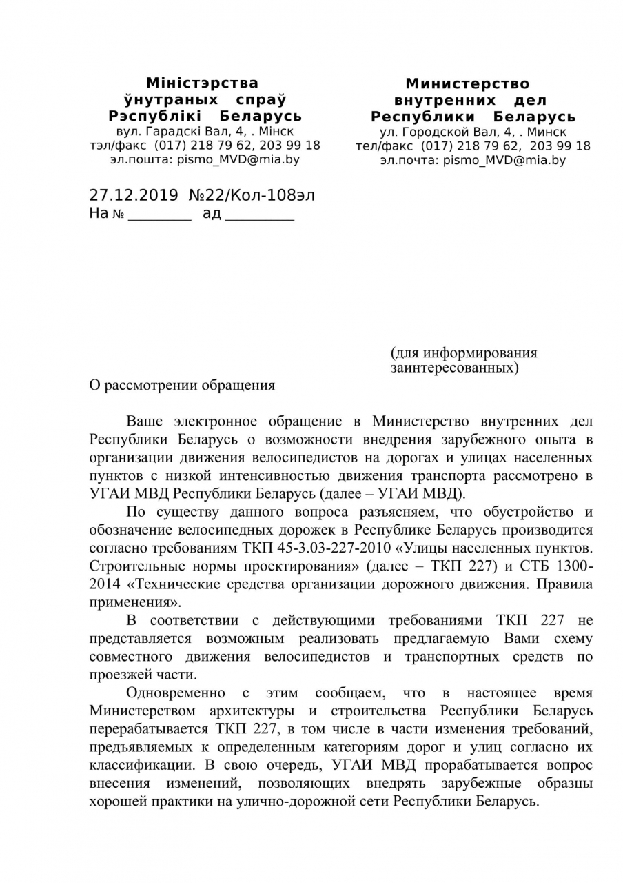 просим рассмотреть возможность внедрения такого зарубежного опыта в Беларуси.