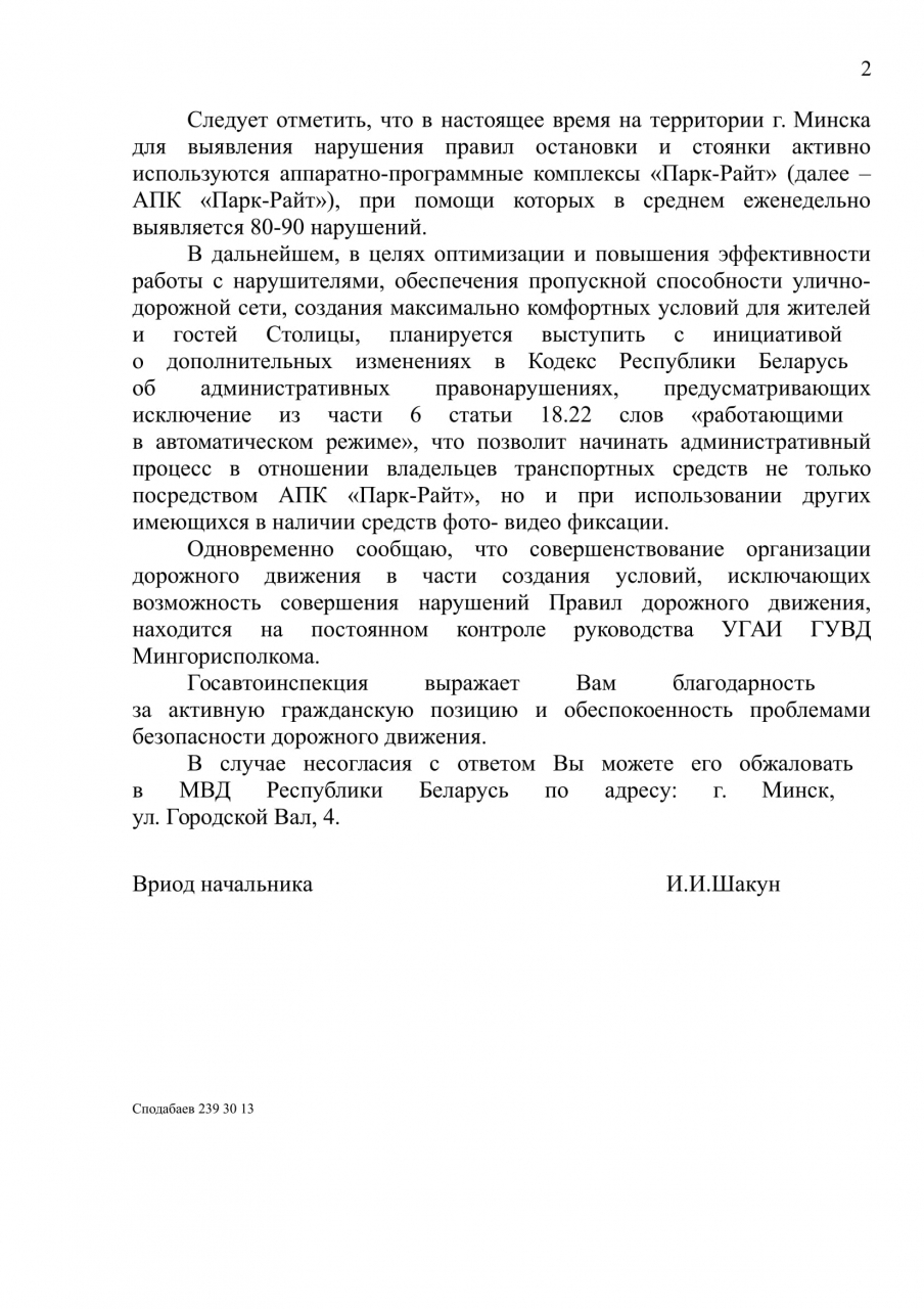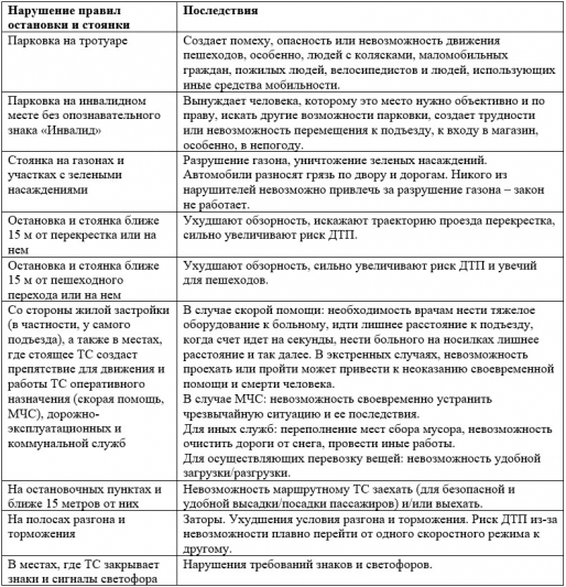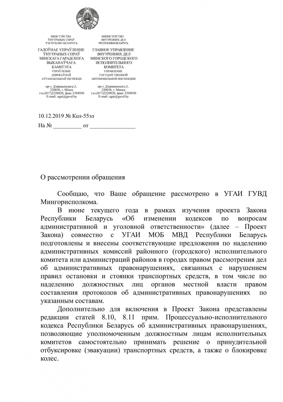 В последние годы в городе Минск очень остро стоит вопрос о нарушении правил остановки и стоянки транспортных средств (далее - ТС). Наиболее острые последствия этой проблемы см. в таблице на рис.1, прилагаемом к настоящему обращению.