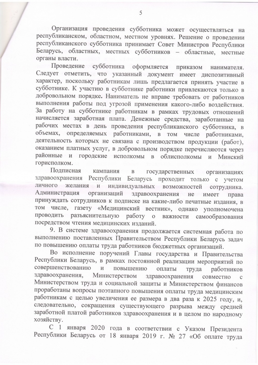 8) Прекратить сборы денежных средств под предлогом субботников и практику обязательной подписки на «Медицинский вестник».