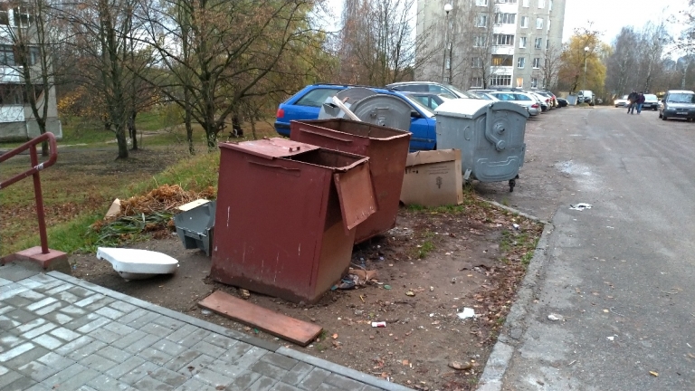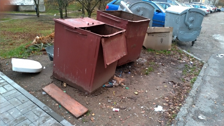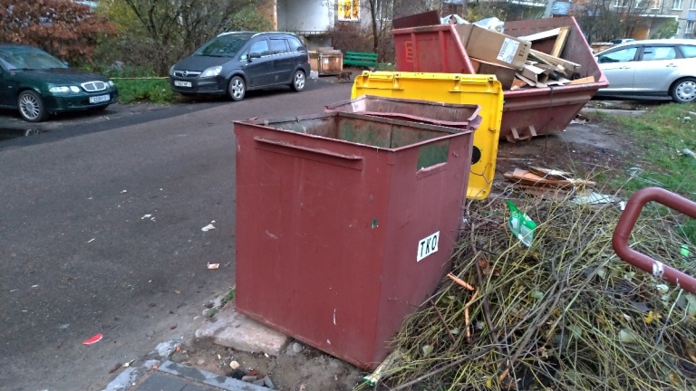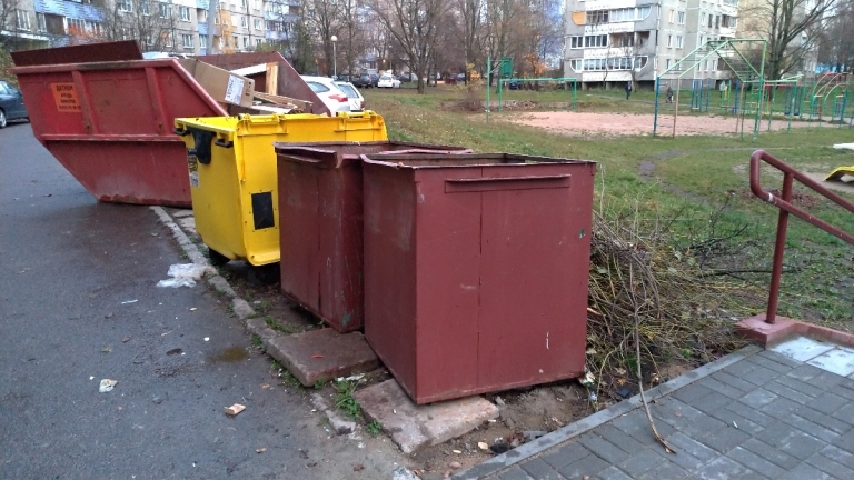 Возле жилого дома №2 по улице Тикоцкого в Минске контейнерные площадки для сбора мусора находятся в неудовлетворительном состоянии. Контейнеры не ограждены, стоят прямо на земле, дождь смывает нечистоты прямо в почву.