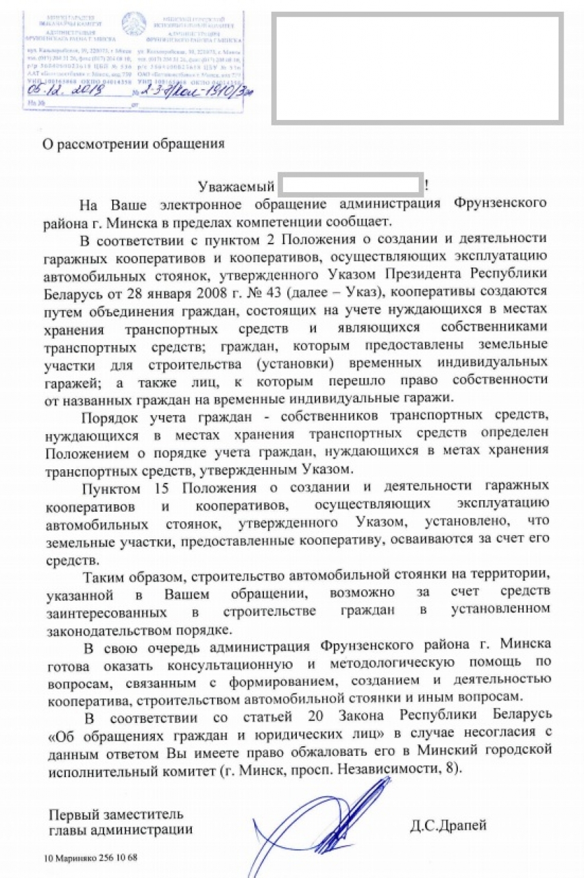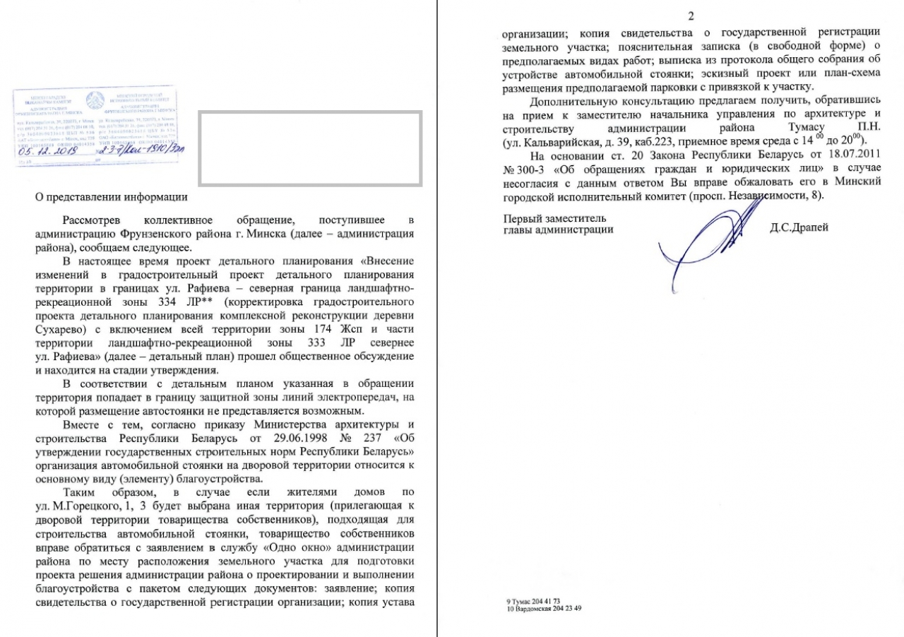 Мы, жильцы данных домов и иные заинтересованные граждане, просим изыскать денежные средства и запланировать создание автомобильной стоянки в вышеуказанном месте на следующий год.
