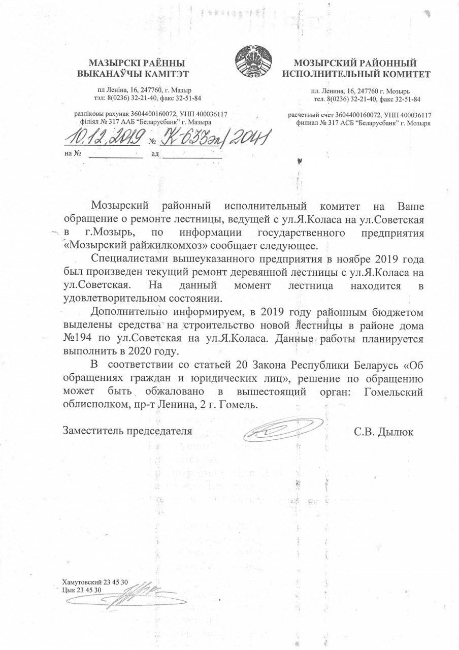 Просим Мозырский райисполком услышать просьбы горожан и гостей города и выделить средства на срочный ремонт лестницы.