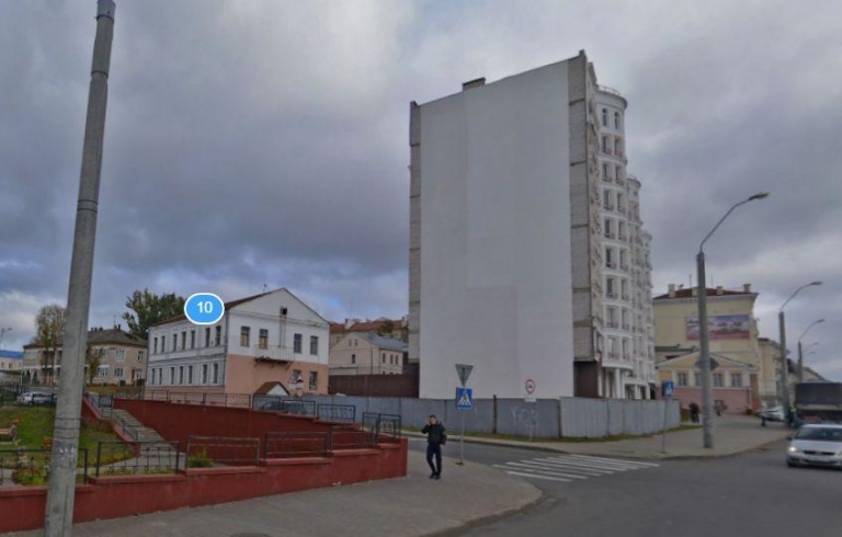 Что касается уже возведенных секций жилого дома, то они, на наш взгляд, являются дисгармоничными по отношению к исторической среде, поскольку, полагаем, возведены без учёта перепада рельефа и расположения в непосредственной близости от архитектурно ценной застройки, довлеют своим объемом над окружающей исторической средой, в том числе над соседним двухэтажным домом по Коммунистическому переулку, 10 (ИККЦ без категории в составе исторического центра), а также застройкой по нечётной стороне Лазаренко (ИККЦ в составе исторического центра), восприятие которых и без того искажено возведением чрезвычайно высоких откосов моста через Дубровенку. Кроме того, считаем, что здание ухудшает восприятие исторического центра с традиционной точки восприятия (улица Лазаренко, бывшая Виленская, когда-то служила основным въездом со стороны столицы ВКЛ города Вильно и Минска), важность сохранения этих точек восприятия и необходимости создания террасной застройки на склонах также отражены в ПЗО исторического центра, который был проигнорирован застройщиком и согласующими органами; а также фактически закрывает вид на здание городского театра 1886–1888 годов (шифр 513Г000586) с правого берега Дубровенки.