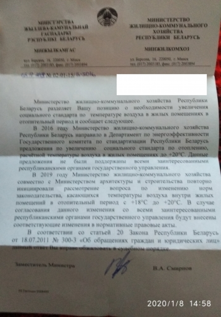 В случае согласования изменения норм законодательства, касающихся температуры воздуха внутри жилых помещений в отопительный период с +18℃ до +20℃, со всеми заинтересованными республиканскими органами госуправления, будут внесены соответствующие нормативные правовые акты.