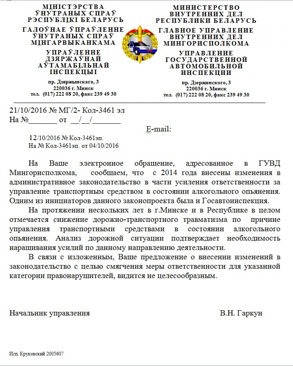 УГАИ ГУВД МГИК солидарно с вышестоящим ведомством и сообщает, что анализ дорожной ситуации только подтверждает необходимость наращивания усилий по борьбе с пьяным вождением.
