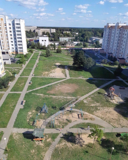 В частности не был рассмотрен по существу п. 7.4.14 ТКП 45-3.01-116-2008 «Градостроительство. Населенные пункты. Нормы планировки и застройки», согласно которому “для физкультурно-оздоровительных занятий населения в пределах жилых территорий следует принимать комплексные спортивные площадки из расчета от 0,7 до 0,9 га на 1000 жителей и от 70 до 80 м2 площади пола помещений на 1000 жителей, с радиусом доступности от 500 до 800 м”. В полученном ответе заместитель председателя Дылюк Сергей Викторович ссылается на площадку с тренажерами в радиусе пешей доступности. По нашим замерам площадь этой площадки составляет 20 м * 30 м = 600 м2 = 0.06 га. По приблизительным подсчетам в жилой застройке ул. Гагарина – ул. Мира проживает от 2000 до 2500 человек, следовательно, согласно приведенной выше норме жильцы вправе рассчитывать на более, чем 1.4 га спортивных площадей. При имеющихся 0.06 га можно констатировать, что норма нарушена в десятки раз. Кроме того, упомянутая площадка представляет из себя турники и уличные тренажеры, а следовательно доступна в основном для взрослого населения, но не для детей и подростков, еще юных, для силовых тренировок, или предпочитающих игровые виды спорта (футбол, волейбол, баскетбол).