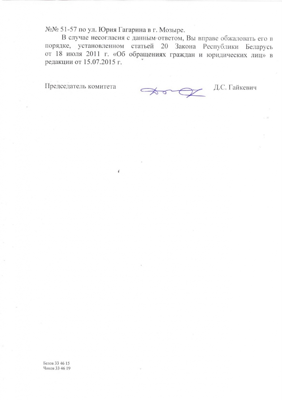 18 ноября 2019 года в Мозырский районный исполнительный комитет направлено обращение посредством электронной формы, текст обращения прилагается.