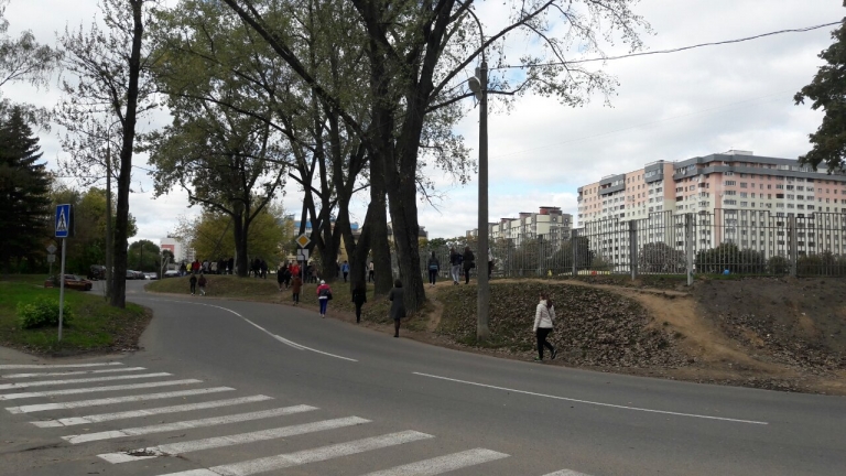 Отметим, что данный путь активно используется местными жителями, учащимися школ, детских дошкольных учреждений, самими студентами и сотрудниками БГПУ. Однако, эта дорога является крайне опасной. Ранее существовал второй вход на стадион со стороны ул. Воронянского, он же мог служить и сквозным проходом в целях избежания опасного пути. При смене руководства стадиона второй вход был закрыт. Сейчас, чтобы преодолеть расстояние от ул. Сенницкая, Аэродромная и т.д. до ул. Воронянского, Левкова (сосредоточение всех ДДУ И СШ, остановок общественного транспорта, магазинов), необходимо пройти вдоль стадиона БГПУ (обойти его). Вдоль него отсутствуют какие-либо пешеходные связи, а именно – полное отсутствие тротуара, высокая гора с выпирающими корнями деревьев и примыкание к S-образному перекрестку автомобильной дороги со “слепыми зонами”, а по другой стороне – действующая АЗС, зачастую имеющая очередь из грузовых автомобилей, мусоровозов и тракторов. Градостроители предприняли некоторые действия и летом этого года по территории АЗС была нанесена разметка «зебра» и установлены знаки «пешеходный переход». Однако, этот пешеходный переход проходит по территории самой АЗС, зачастую загорожен автомобилями, ожидающими заправки. Далее тротуар либо какая-то пешеходная дорожка и вовсе отсутствует. Только ямы, грязь. Со стороны стадиона и вовсе полное отсутствие пешеходных дорожек.