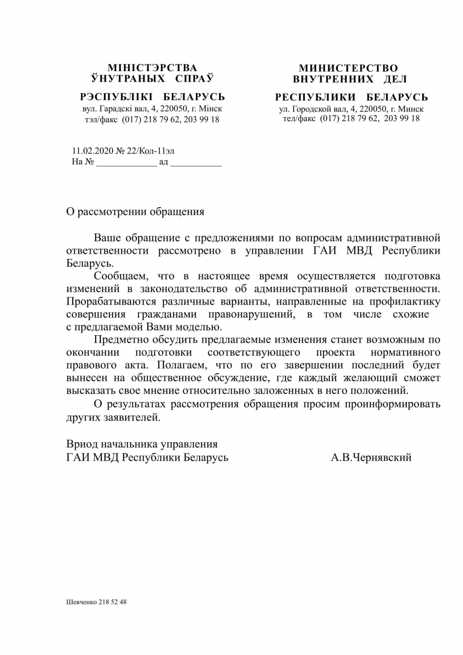 В настоящее время осуществляется подготовка изменений в законодательство об административной ответственности. Прорабатываются различные варианты, направленные на профилактику совершения гражданами правонарушений, в том числе схожие с предлагаемой в обращении моделью. Соответствующий проект нормативного правового акта будет вынесен на общественное обсуждение, где каждый желающий сможет высказать свое мнение относительно заложенных в него положений.