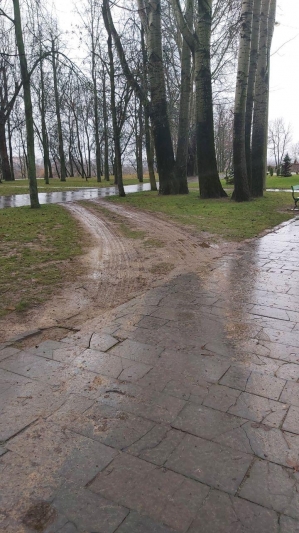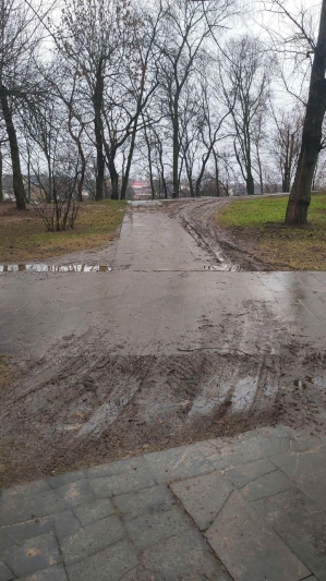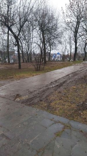В парке Горького в Могилёве каждый день ездят машины по тротуарным дорожкам, по зелёной зоне. Этим самым они нарушают ПДД, так как по тротуару ездить нельзя, разрушают зелёное и тротуарное покрытие, создают опасность для пешеходов.
