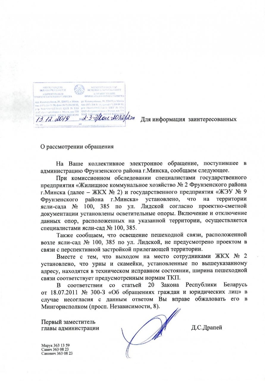 1) Первый заместитель главы администрации Фрунзенского района Драпей Д.С ссылается на ткп, при этом ссылки на конкретные главы и названия не прилагает.