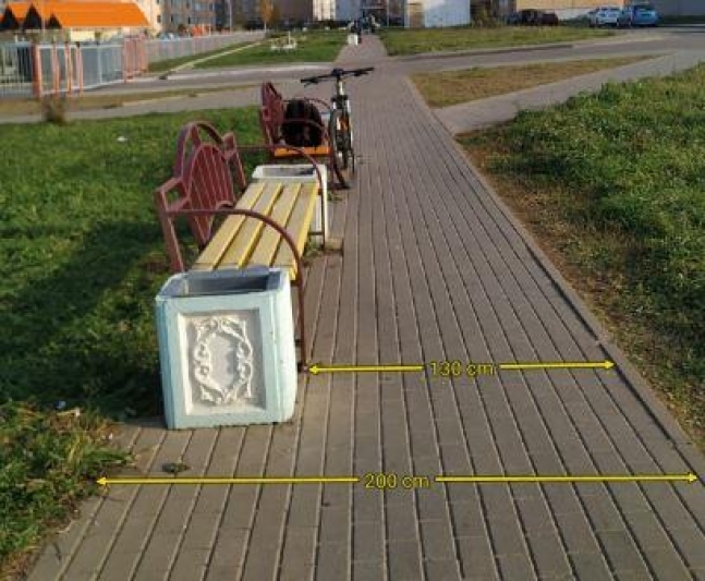 Минимальная ширина пешеходной дорожки при самостоятельном трассировании должна составлять не менее 1,5 м. "