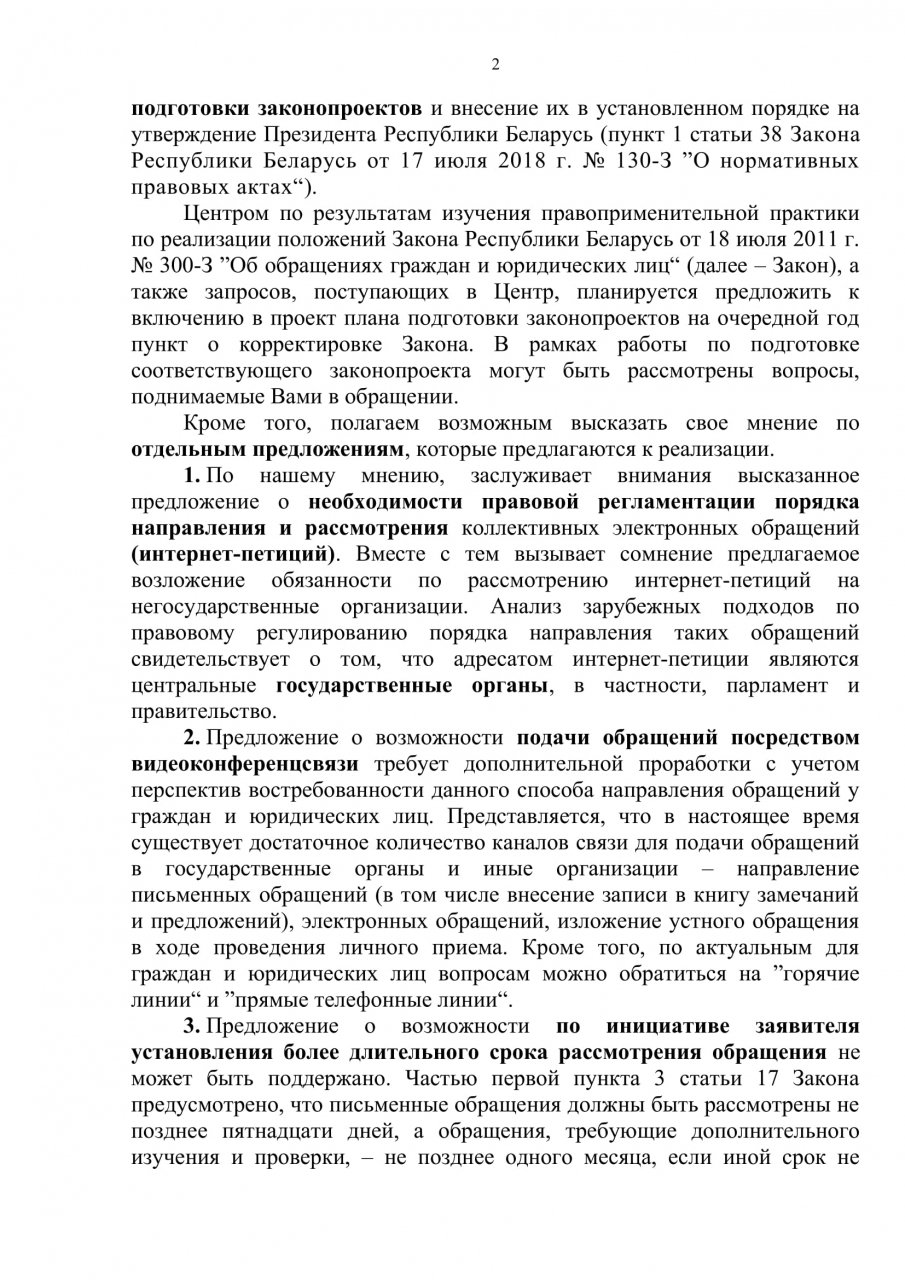 Некоторые предложения, изложенные в обращении, заслуживают внимания и могут быть рассмотрены в ходе плановой корректировки Закона "Об обращениях граждан и юридических лиц".