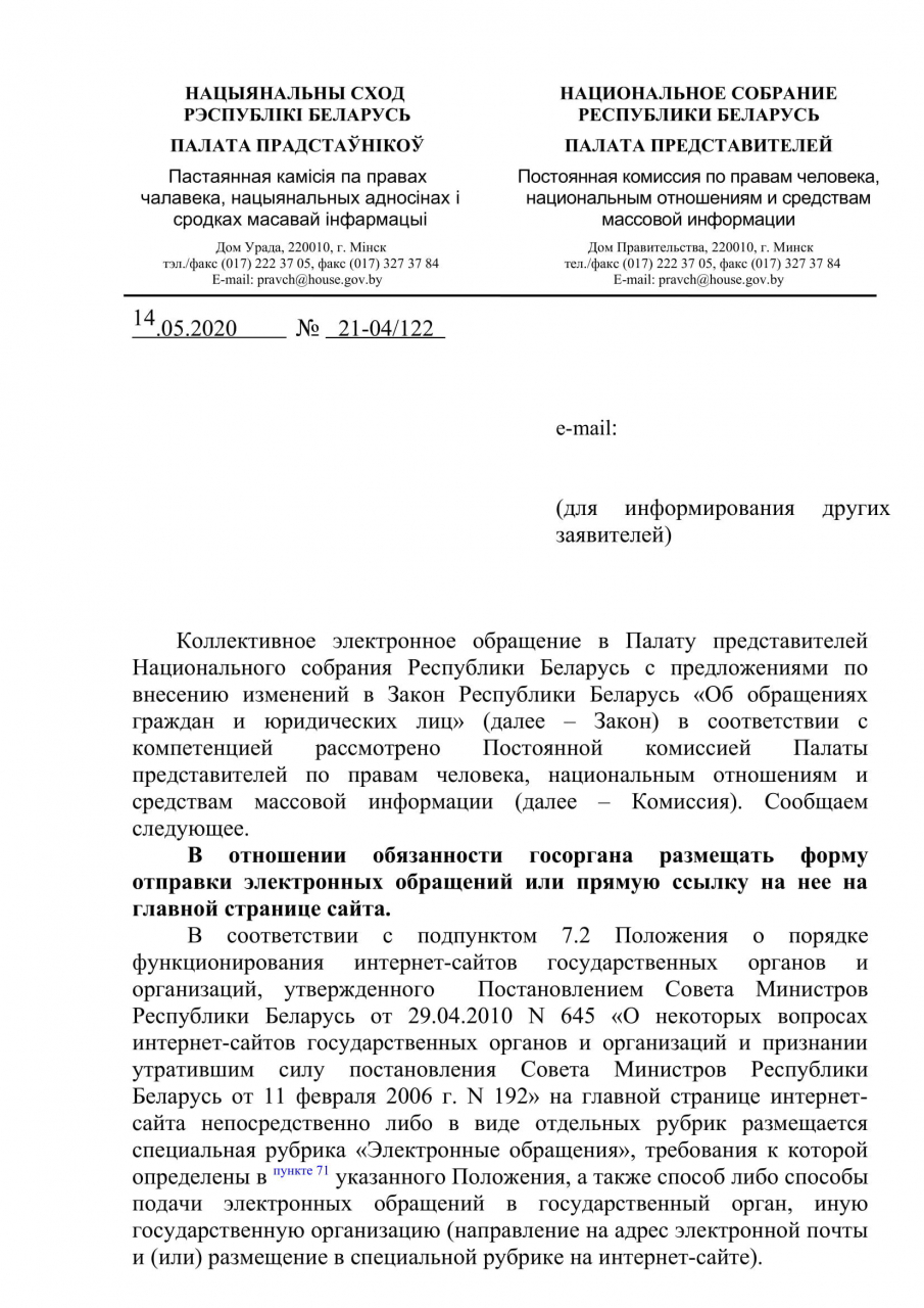 4. Обязать госорганы размещать форму отправки электронных обращений или прямую ссылку на нее на главной странице сайта