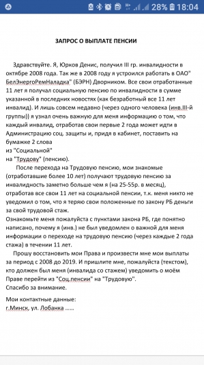 3) какую именно пенсию первый в списке заявитель настоящего обращения (инвалид III гр.) получал до того, как перешёл на трудовую пенсию?