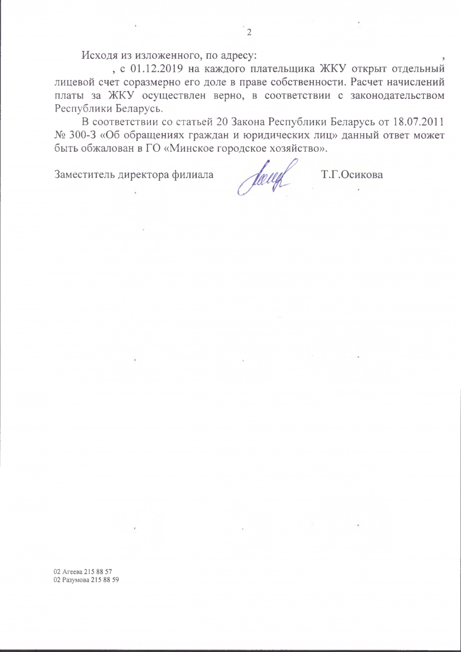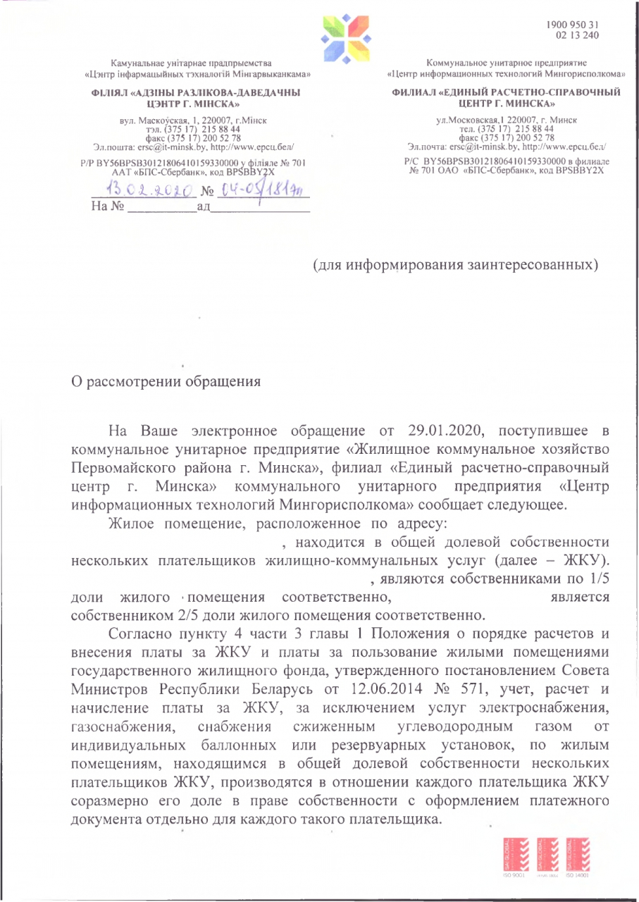 Жилое помещение находится в общей долевой собственности нескольких плательщиков ЖКУ, в связи с чем на каждого плательщика ЖКУ с 1 декабря 2019 г. открыт отдельный лицевой счёт соразмерно его доле в праве собственности.