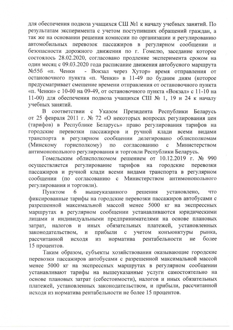 Совместно с Гомельским горисполкомом и филиалом "Автобусный парк №6" ОАО "Гомельоблавтотранс" прорабатываются варианты добавления рейсов по маршруту №12 в часы пик. Перевозчики, оказывающие услуги по перевозке пассажиров на экспрессных маршрутах устанавливают тарифы на вышеуказанные услуги самостоятельно.