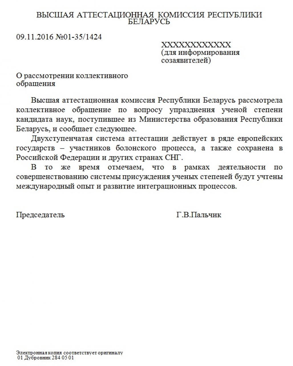 В настоящий момент ни в одной стране Европы, кроме Беларуси не существует степени "кандидат наук". В связи с чем для улучшения отечественной системы образования, предлагаем перейти к системе "бакалавр - магистр - доктор", упразднив учёную степень "кандидат наук".