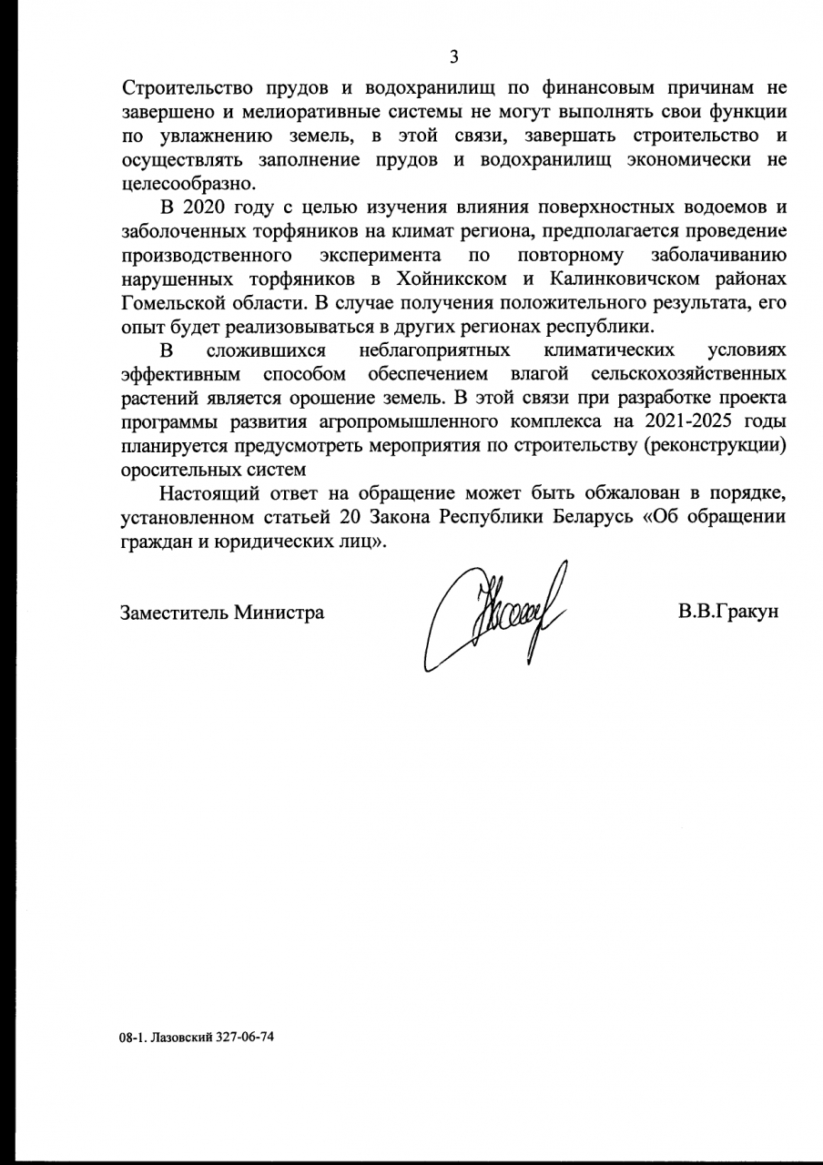 4) Разработать и осуществить Государственную программу по восстановлению в рациональных количествах ранее осушенных болот, для восстановления климата региона и создания необходимых условий развития сельскохозяйственного производства.