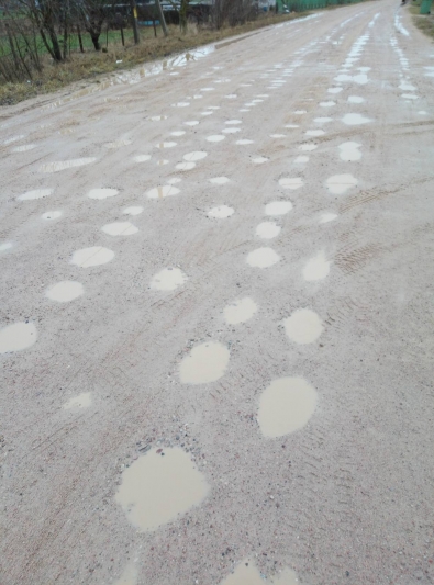 К микрорайону «Чеховцы» можно добраться только по дороге с гравийным покрытием. Ежедневно по этой дороге некоторые из нас добираются на работу, а дети в школу. Отсутствие обочины, а также ночного уличного освещения, создаёт угрозу безопасности движения для детей и иных пешеходов, что, полагаем, противоречит закону Республики Беларусь от 05.01.2008 г., №313-3 "О дорожном движении". Кроме того, данное гравийное покрытие в силу погодных условий очень быстро разбивается. В дождливую погоду грейдирование даёт положительный результат на несколько дней. Из-за мелких глубоких ям и неровностей приходится постоянно производить ремонт подвески автомобилей. Такое состояние дороги составляет более двух километров.
