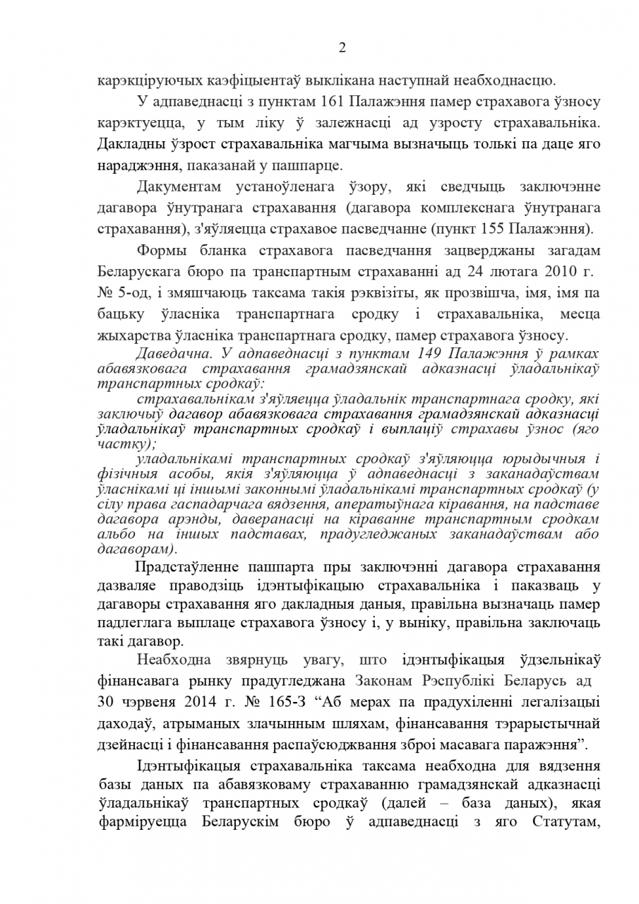 Договор внутреннего страхования (договор комплексного внутреннего страхования) может быть заключен без представления страхователем – физическим лицом документа, удостоверяющего личность, с корректировкой размера страхового взноса исходя из установленного максимального значения корректирующих коэффициентов, зависящих от возраста страхователя и его стажа вождения по соответствующей категории транспортного средства, а также аварийности использования транспортного средства." неадпавядаючым Канстытуцыі і Дырэктыве аб дэбюракратызацыі і выдаленні іх з Указа.
