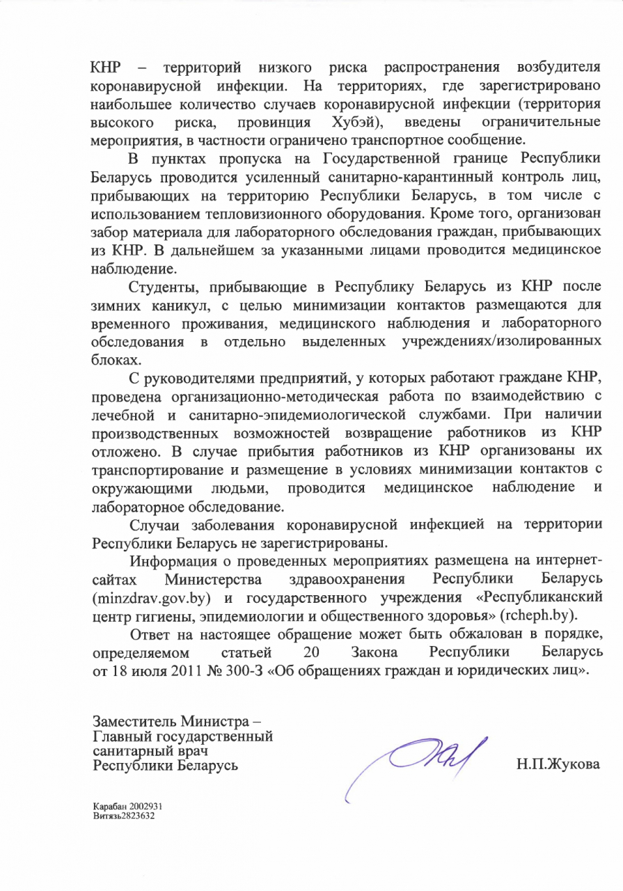 Просим власти Республики Беларусь запретить въезд жителей Китая в нашу страну и закрыть авиасообщение с данной страной в связи со смертельной угрозой. Распространение смертельного заболевания может быть очень быстрым и достигнуть стадии пандемии. Не дадим заболеть и погибнуть нам и нашим детям!