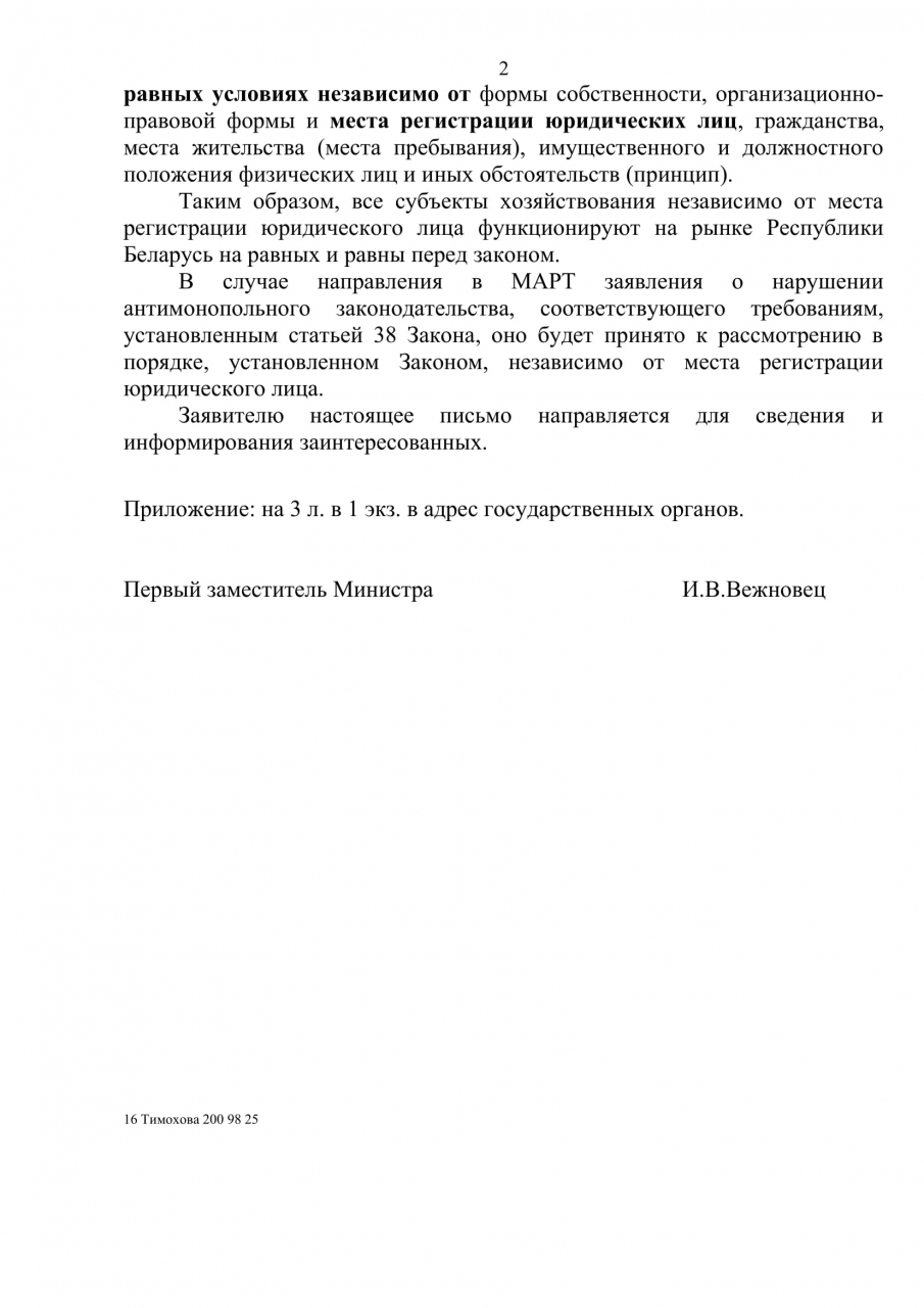 В связи с этим мы требуем, чтобы Совет Министров, Министерство антимонопольного регулирования и торговли, Министерство труда и социальной защиты и другие государственные органы в соответствии со своей компетенцией рассмотрели вопрос об обязанности для иностранных ИС регистрировать на территории Республики Беларусь юридическое лицо, работа которого будет соответствовать законодательству Республики Беларусь.