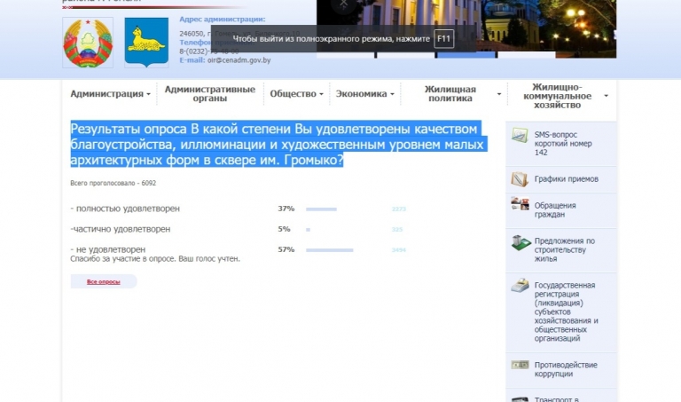Важно отметить, что в 2019 году на сайте администрации Центрального района завершён опрос о качестве благоустройства сквера им.Громыко, где 57% участников (3.494 человека) были не удовлетворены художественным уровнем реализуемого проекта. Однако, администрация проигнорировала результаты, и в преддверии 2020 года были установлены еще две конструкции в том же стиле.