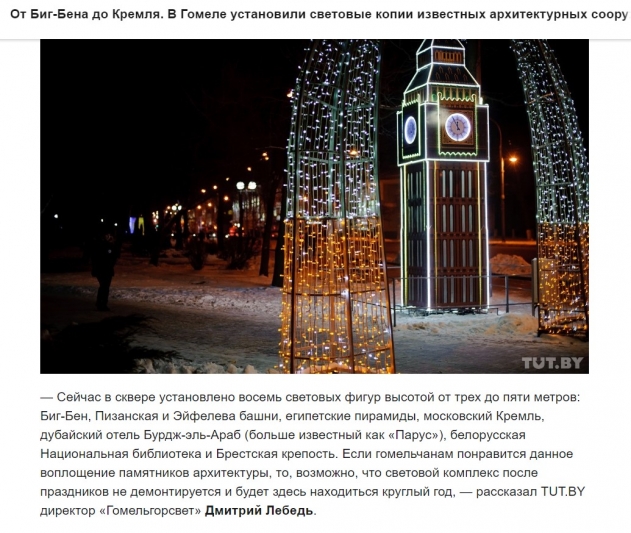 В конце 2016 года в сквере имени Громыко установлен световой парк с 8 копиями знаменитых архитектурных сооружений, который стал частью новогодней иллюминации. Однако, после окончания праздников его не демонтировали, а оставили стоять на постоянной основе. При этом каждый год парк пополняется новыми объектами, сейчас установлено уже 13 работ.