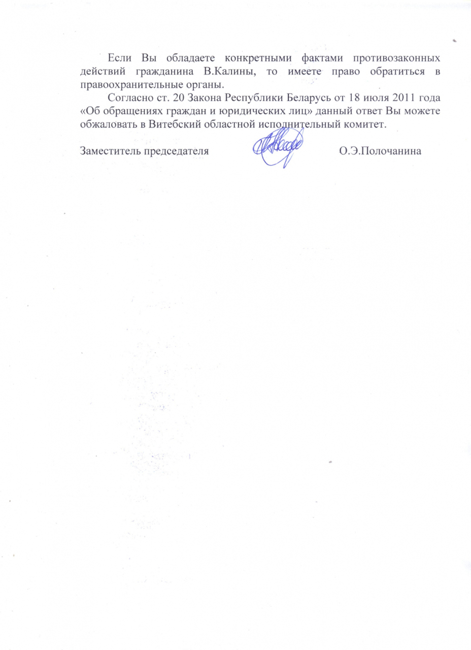 отказать в выдаче исполнителю Калине В.В. свидетельства на право организации и проведения культурно-зрелищного мероприятия в городе Докшицы и (или) аннулировать его, если подобное свидетельство уже выдано.